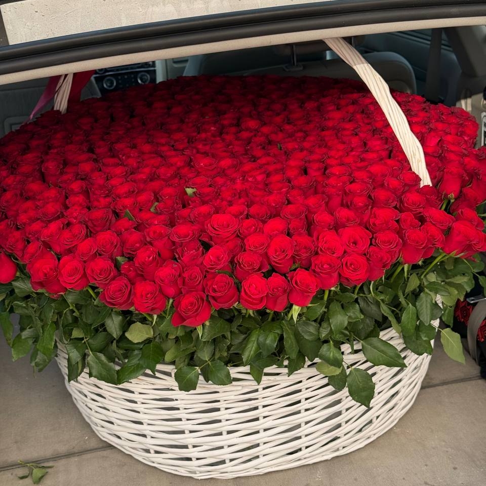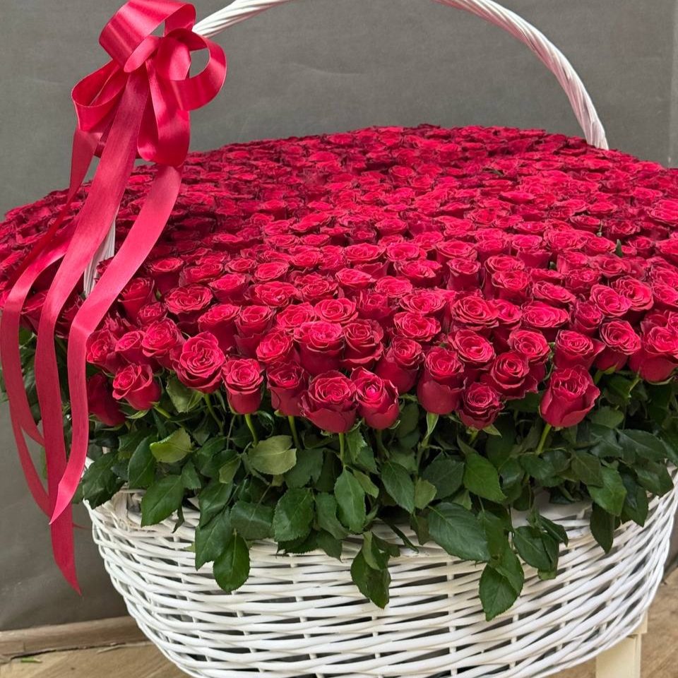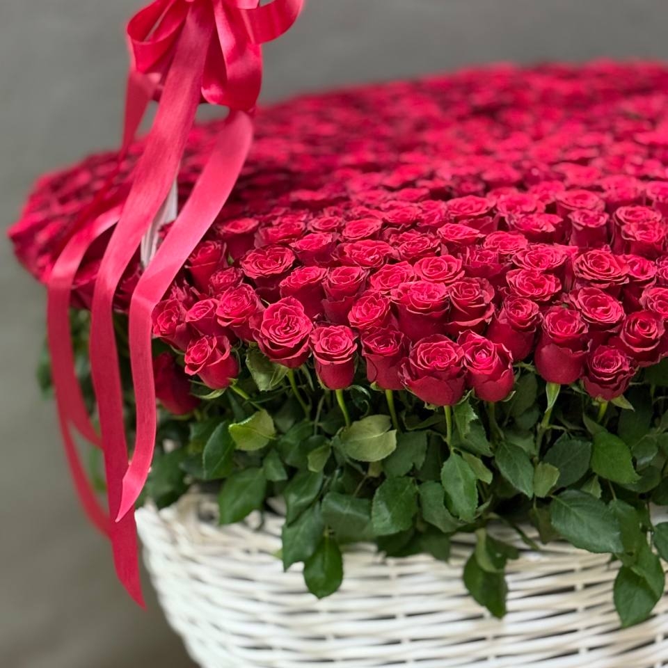 Состав: 501 красная роза, флористическая губка, корзина, атласная лента.